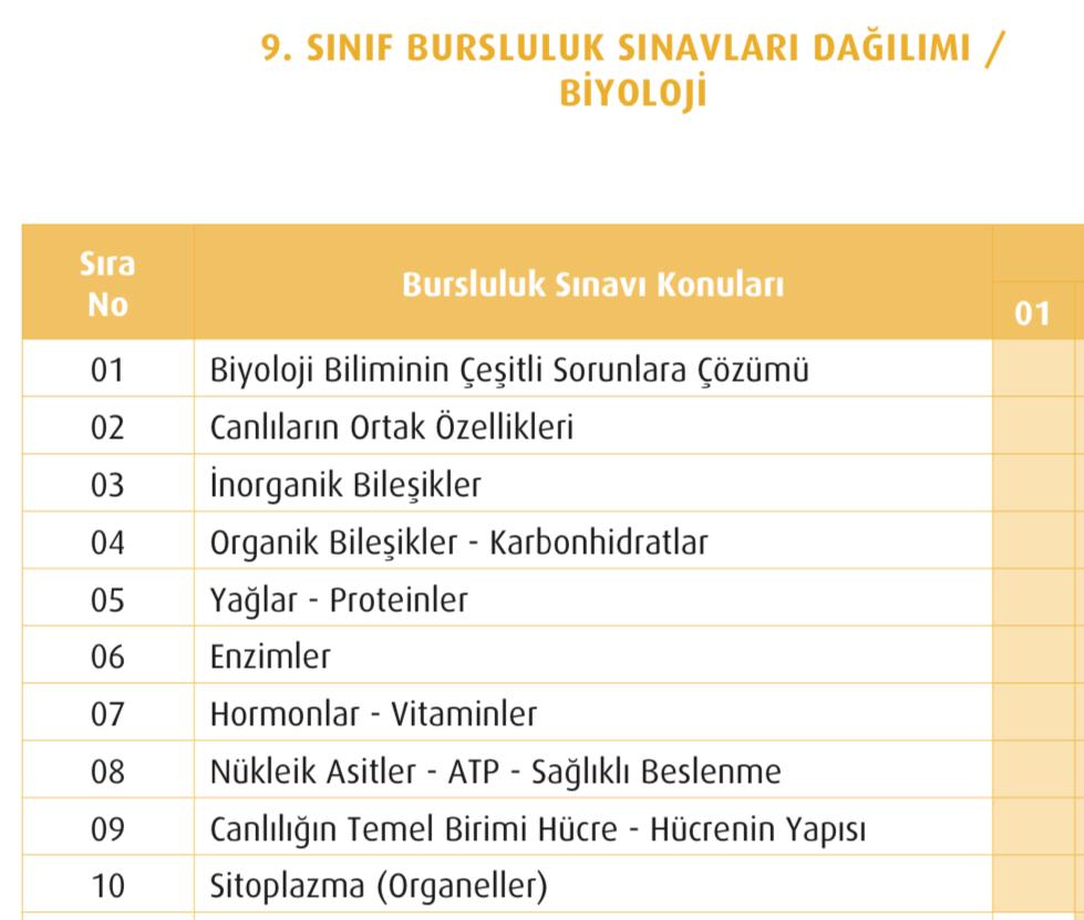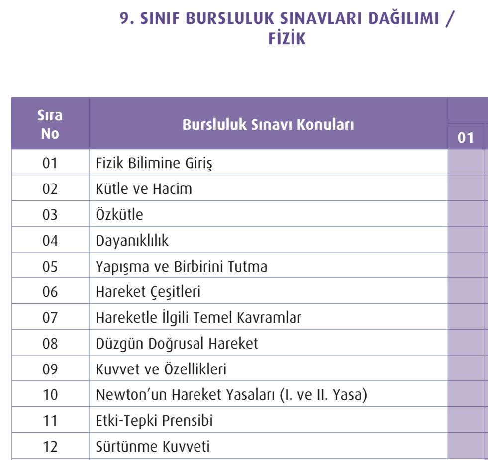 9. Sınıf Bursluluk Sınavı Konu Dağılımı
